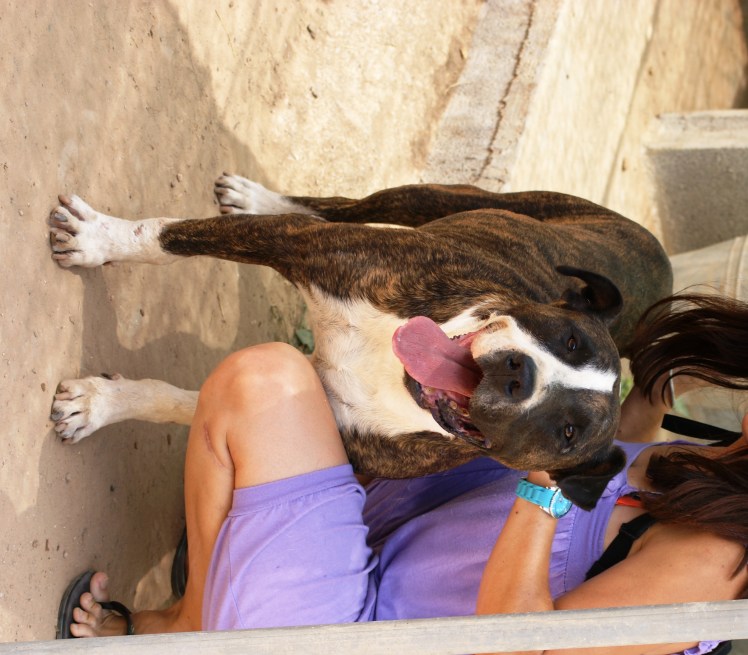 Con las personas es un amor del grande! Aunque no puede convivir con otros perros y eso dificulta su adopción, con ayuda de este programa, tratamos de curar las heridas de su alma. Sería ideal encontrarle un sitio de acogida donde reposara. Chico podría vivir perfectamente en un entorno sin animales, y que la persona que lo adopte sea responsable y lo lleve siempre con bozal al salir a la calle por si encuentra otro perro. Nosotros ya le hemos hecho un buen trabajo al asociar el bozal en positivo y le encanta llevarlo! Es un amor y necesita un hogar