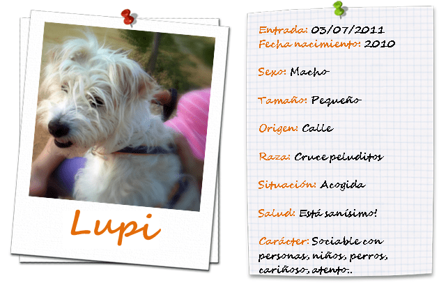 Ahora debemos encontrar un buen hogar para Lupi, a cambio nos ha dicho que él ofrecerá la verdadera amistad, esa que sigue a tu lado incluso cuando no queda nada por ofrecer, salvo una grata compañía.