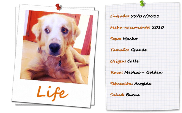 Life, es todo un superviviente, durante un año y medio vagaba por una urbanización, varías veces intentaron cogerle pero al final le dieron por un caso perdido.