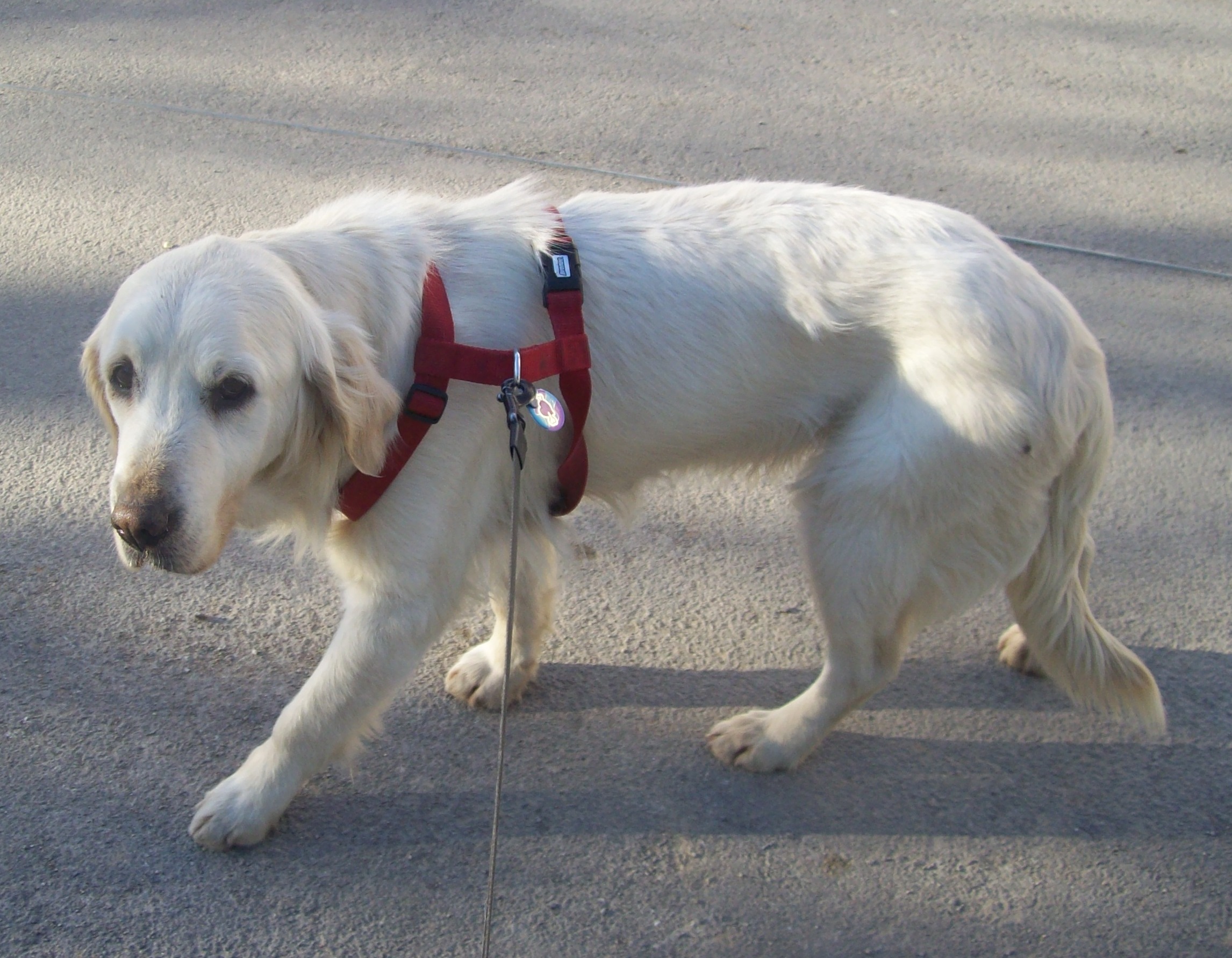 Pero hay signos de que su vida ha sido dura: su extrema delgadez (aunque camuflada por ese pelo descuidado..), esos dientes que le faltan, los temores al ver un palo, el salir a la calle..