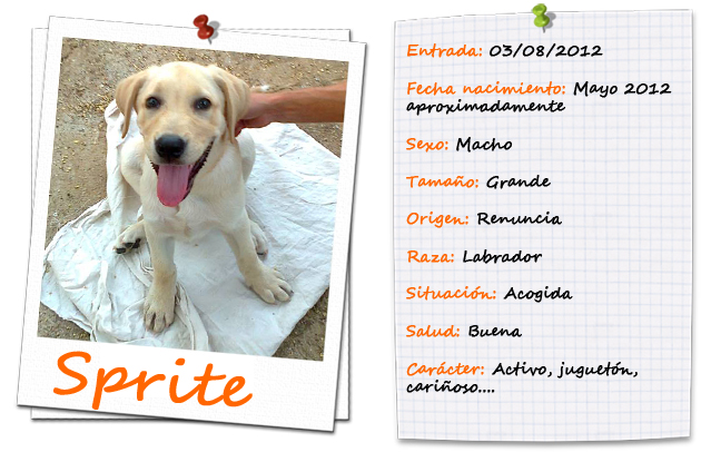 Sprite ya sabe lo que es pasarlo mal en la vida y los abandonos, a pesar de llevar 3 meses en este mundo ya ha saboreado lo agrio de la vida….pero vamos a hacer que a partir de ahora su vida sea dulce…muy dulce.
