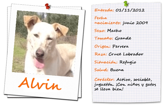 De Alvin os contamos que no pierde la esperanza. Es un perro alegre, sociable, cariñoso, activo y juguetón. Le gustan los niños y no tiene problemas con gatos. ¿Y tú no te comerías esas orejitas tan monas? Escríbenos a sosgolden@gmail.com