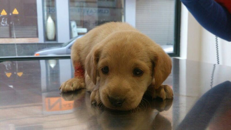 Bob tiene seccionado el tendón de Aquiles a consecuencia del maltrato. La herida ya está curada. No necesitará más curas… Pero en primer lugar, deberá llevar la patita vendada en posición de extensión, para posteriormente tener que llevar una férula hasta que pueda ser operado cuando termine su crecimiento, sobre los 9-10 meses. Como irá creciendo, irá cambiando de tamaño de férula…. Seguramente se le tendrá que realizar una operación que consiste en la fijación de la articulación con una placa y tornillos. Cuando haya soldado en unos 3 meses, se le retirará la placa, luego podrá y deberá realizar una vida normal!!!