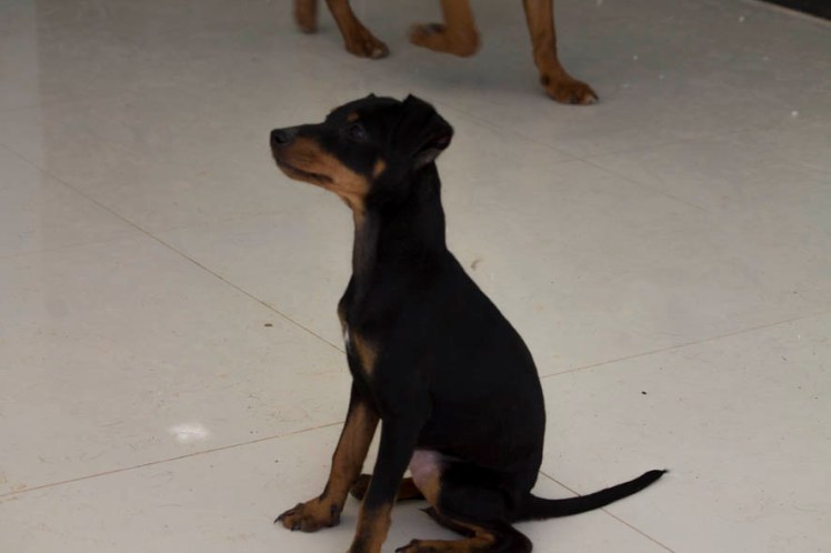 Becki es una Doberman Pincher muy cariñosa. Es una cachorrita muy lista, su peso no superará los 4 kg. Muy sociable con niños y gatos.