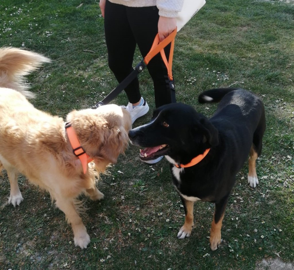 Saben ir sueltos de maravilla y atienden a la llamada. Con correa tiran bastante (salían poco de paseo y con correa muy corta). Se relacionan bien con otros perros.